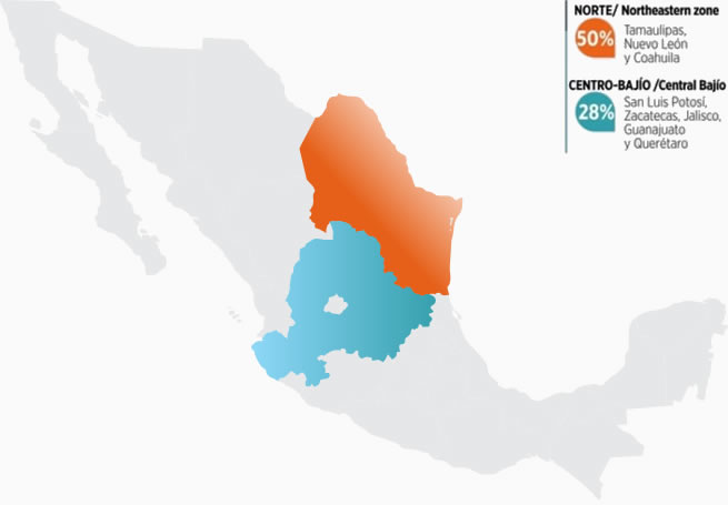 In imports and exports through Altamira, the origin and destination of tonnage is distributed as follows: