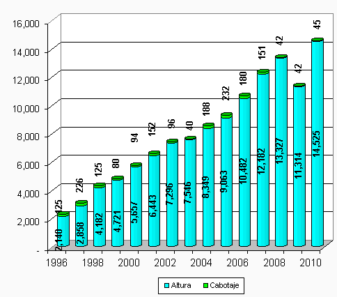 The Port of Altamira had in the year 2010 an increase of 28.3% with regards to the year 2009, and has an annual growth rate of 14.2% (TMCA 96/10)